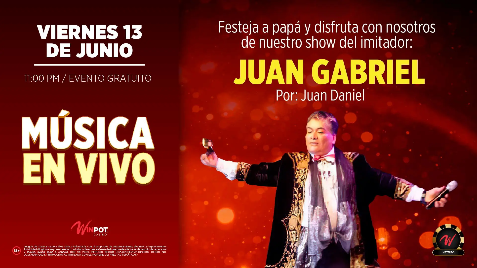 No se permiten las apuestas en línea a través de este sitio web. La permisionaria El Palacio de los Números, S.A. de C.V., autorizada por la Secretaría de Gobernación en términos del permiso federal número DGAJS/SCEVF/P-01/2006, opera en conjunto con la operadora autorizada Pur Umazal Tov, S.A. de C.V. en términos del oficio número DGJS/0057/2015, el Centro de Apuestas Remotas con Sala de Sorteo de Números, con nombre comercial WINPOT CASINO METEPEC©, ubicado en Av. Tecnológico No. 1600 Norte local SA-3 Colonia San Salvador Tizatlalli, Metepec Estado de México C.P. 52172, en términos del oficio DGJS/0057/2015, suscrito por la Dirección General de Juegos y Sorteos.